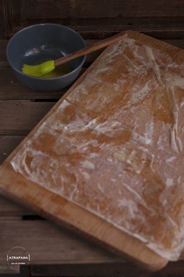 Unas hojas de pasta filo, de cada una nos saldrán 3 o 4 caramelos