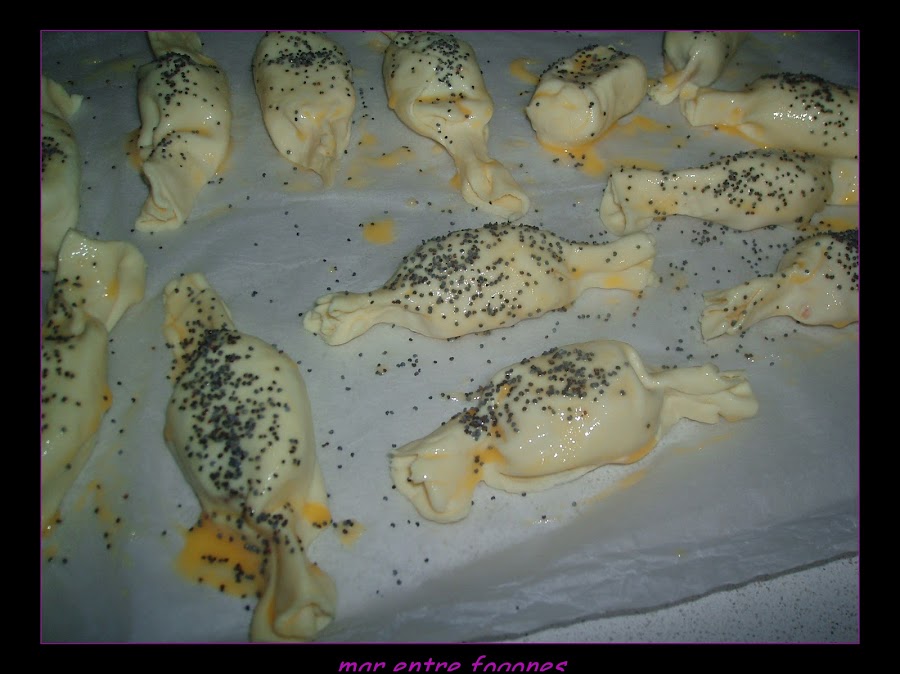 Cuando tenemos todos echos, batimos un huevo y los pintamos con una brocha.