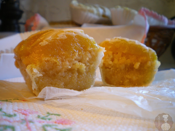 Mezclar un poco de azúcar glas con zumo de limón y decorar la superficie de cada carbayón, así tapamos los agujeros que hicimos en la cobertura y de paso resultan más deliciosos.