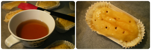 Una vez templada la crema, poner unas cucharadas sobre los carbayones horneados, rellenando casi hasta el borde del hojaldre. Cuando se seque un poco, pinchar para que el almíbar que prepararemos a continuación impregne bien el dulce.