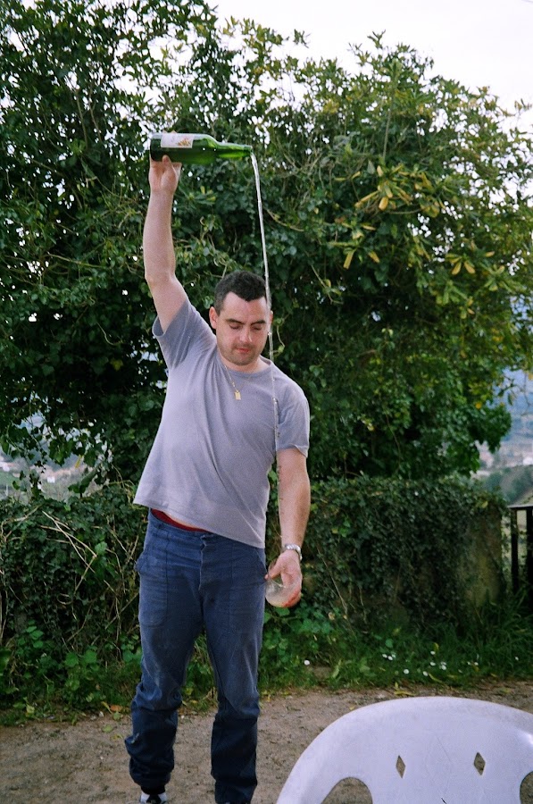 Mi amigo Nando en plena faena de escanciado (el tío no derrama gota)