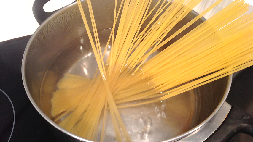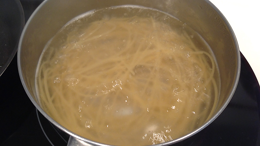 Prepara una olla al fuego con agua abundante. Pon el fuego medio-alto (7/10) y espera a que hierva.