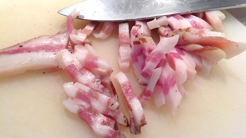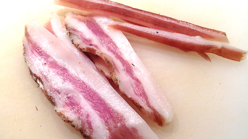 Este es el famoso "guanciale", la papada curada del cerdo. Aquí puedes ver cómo se prepara.