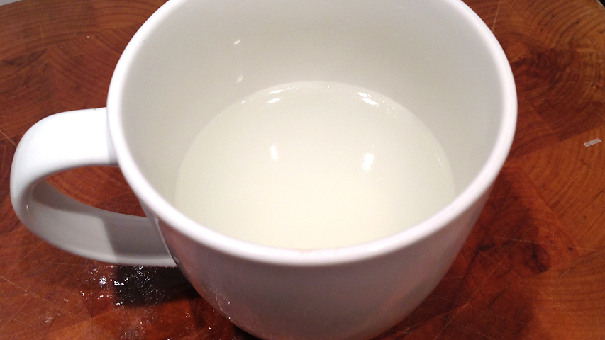 Llena un vaso o jarra con agua de cocción de la pasta y deja que temple. Más tarde servirá para mezclar con las yemas y con el queso para preparar la salsa.