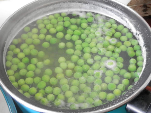 En una olla con abundante agua hirviendo, echa los guisantes y cuécelos durante 8 minutos.