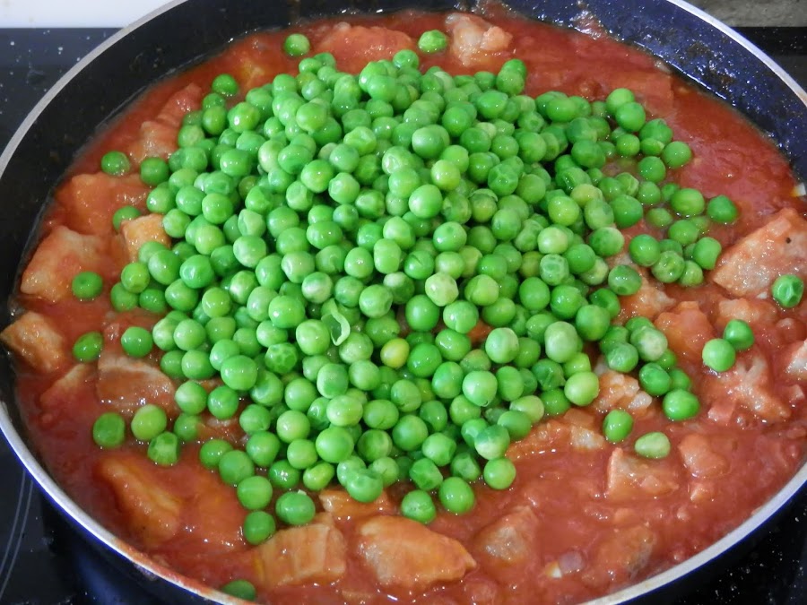 Agrega los guisantes y cuece diez minutos más.