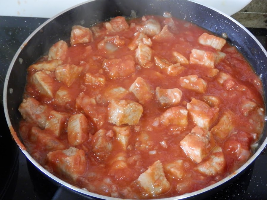 Fríe el tomate triturado con una cucharada de aceite de oliva.