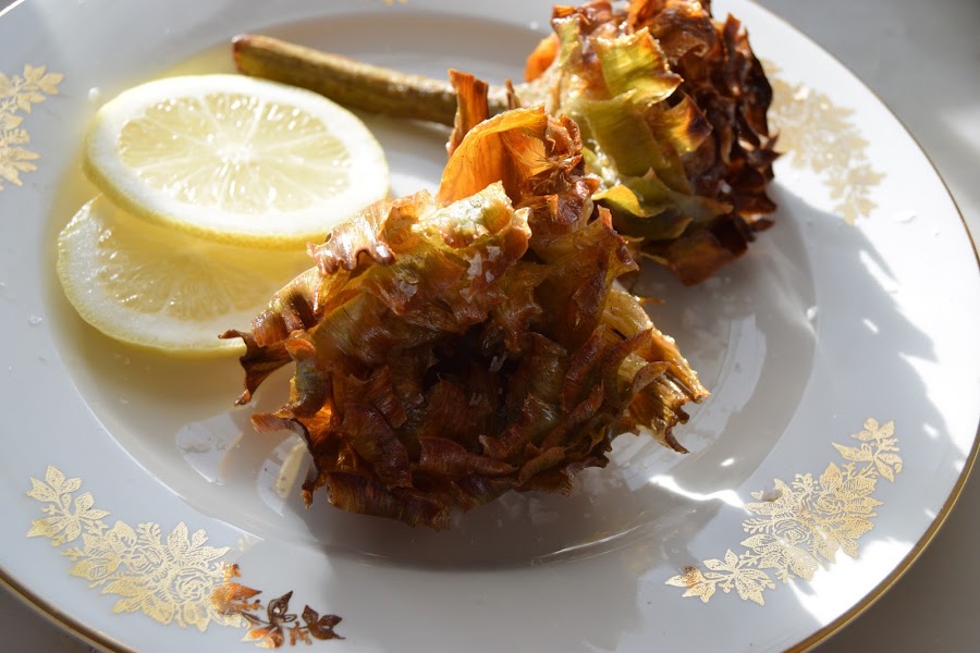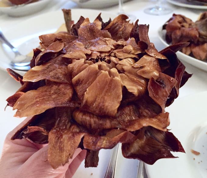 Nunca he sido el tipo de persona que pierda los papeles con una alcachofa pero desde que conozco la existencia de los carciofi alla giudea, las alcachofas al estílo judío típicas de la Roma, las miro de otra manera. Los carciofi se confitan primero y después se fríen en abundante aceite muy caliente hasta que se abren como una flor de pétalos crujientes y color caramelo. Es un plato fantástico que se come con sal y nada más porque no hace falta más.