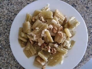 Troceamos y cocemos el cardo, en caso de que sea fresco. Si es en bote ya lo tenemos preparado, solo necesitamos aliñarlo. Para ello, calentamos un poco de aceite en una sartén y cuando ya esté añadimos unos ajos en trozos. Una vez que los ajos empiecen a dorarse añadimos el cardo con un poquito de agua, muy poca, para hacer una mini salsa y que no se nos queme el cardo. Añadimos un poco de harina tamizada para tener un poco de consistencia, las nueces troceadas y sal al gusto. Removemos hasta que quede homogéneo y veamos que ya está listo. Entonces.. a comer!!