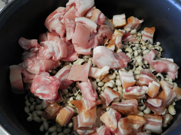 Añadimos agua hasta quedar tres dedos por encima de los ingredientes.