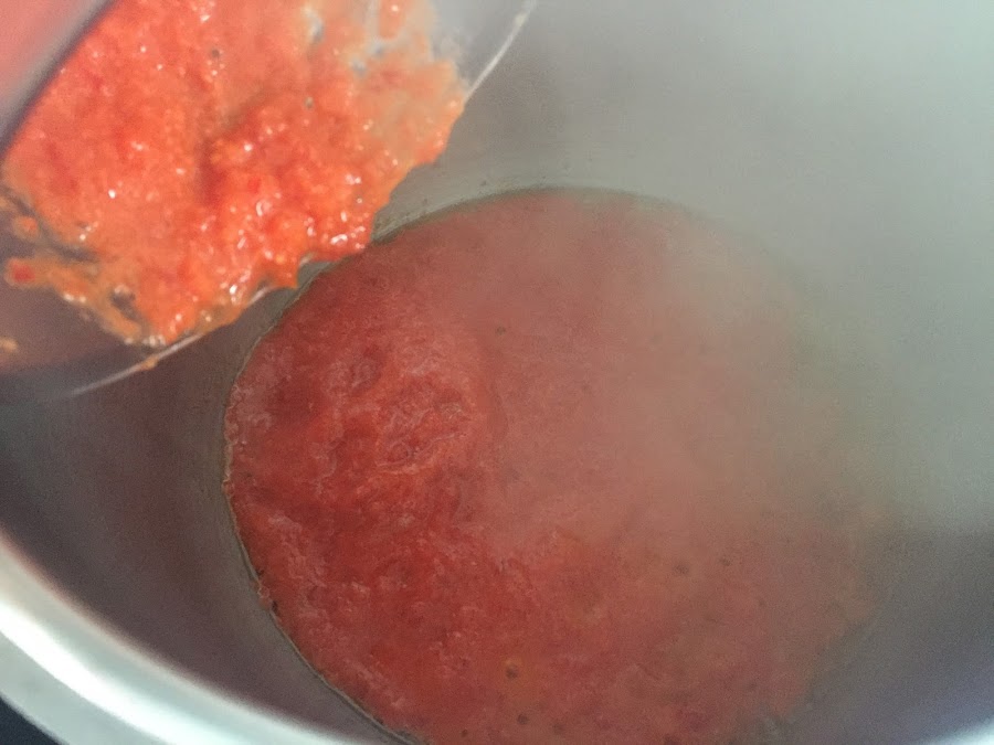 Como a mis hijos no les gusta encontrarse trozos de ajo, cebolla, pimiento o tomate, lo primero que hago es batir estos ingredientes con la batidora y luego sofreírlos en una olla con un poco de aceite de oliva, o bien primero lo sofrío y después lo bato.