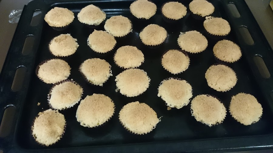 una vez tengamos la pasta procederemos a hacer bolitas con las manos que colocaremos en los moldes de papel una en cada molde, cuando tengamos la bandeja del horno llena colocaremos en éste durante 20 min. aproximadamente a temperatura 150,