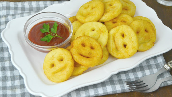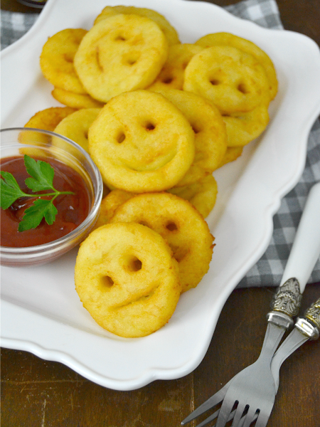 Hoy te traigo una receta perfecta para hacer con los más pequeños de la casa. Unas carítas sonrientes de patata o potato smiley. Una guarnición super sencilla de hacer y que le dará el toque divertido a cualquier plato de carne o pescado ¡Aunque nosotros nos las comemos directamente con ketchup y mostaza!