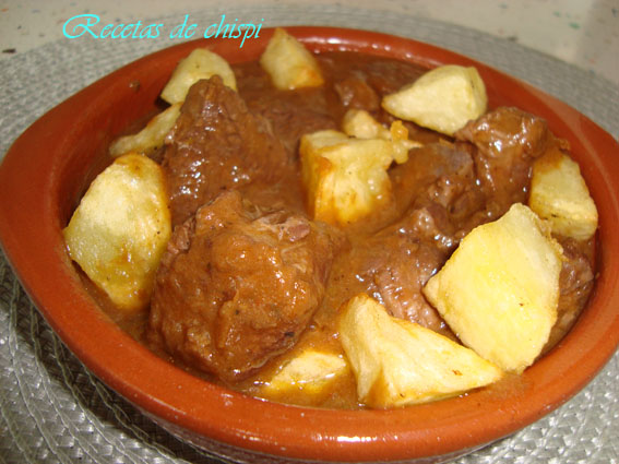 Trocear la carne del tamaño que se quiera, yo aconsejo en trozos grandecitos porque con la cocción mengua mucho.