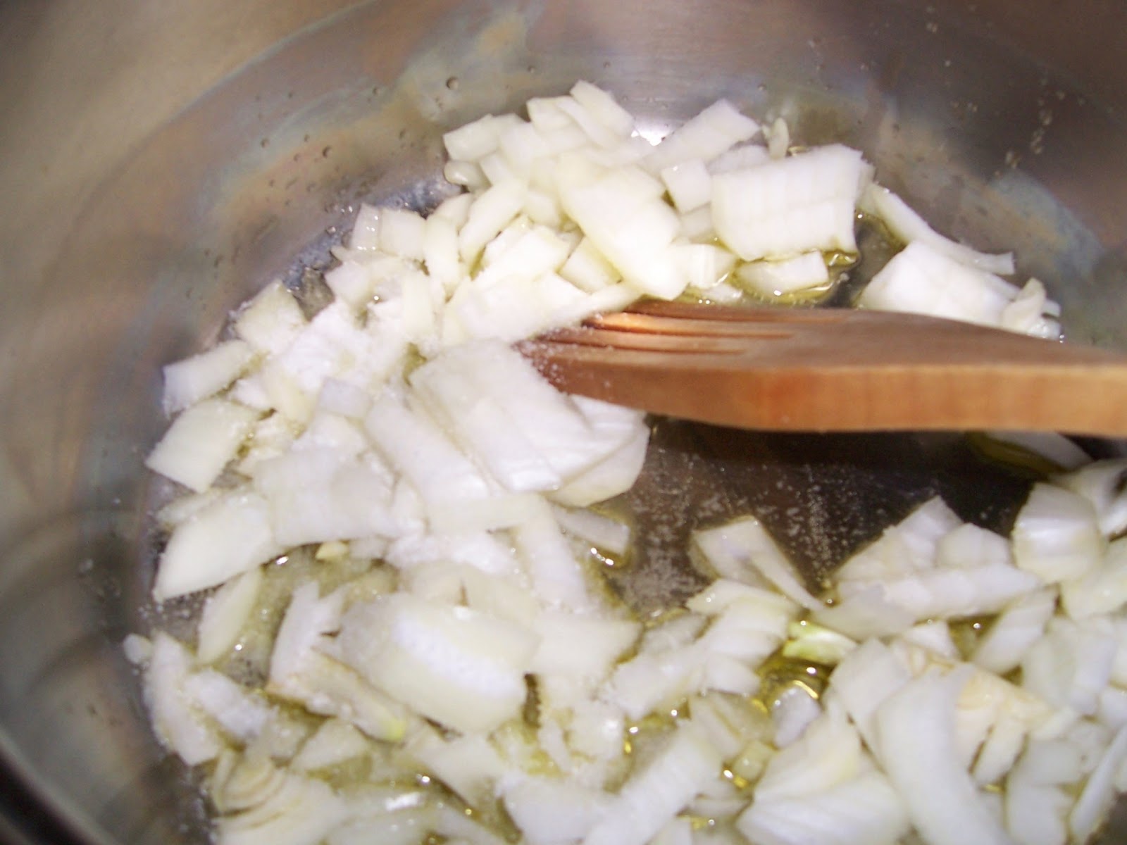 Preparamos la salsa, picando la cebolla finita y la ponemos a pochar con un chorrito de aceite de oliva unos 10 minutos a fuego lento, si es necesario la refrescamos con un poquito de agua.