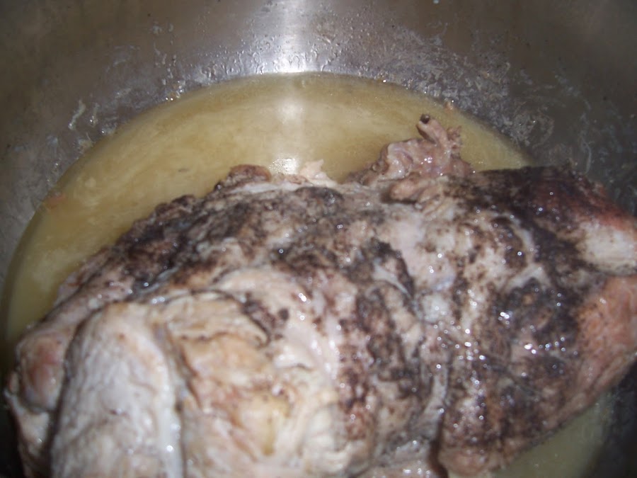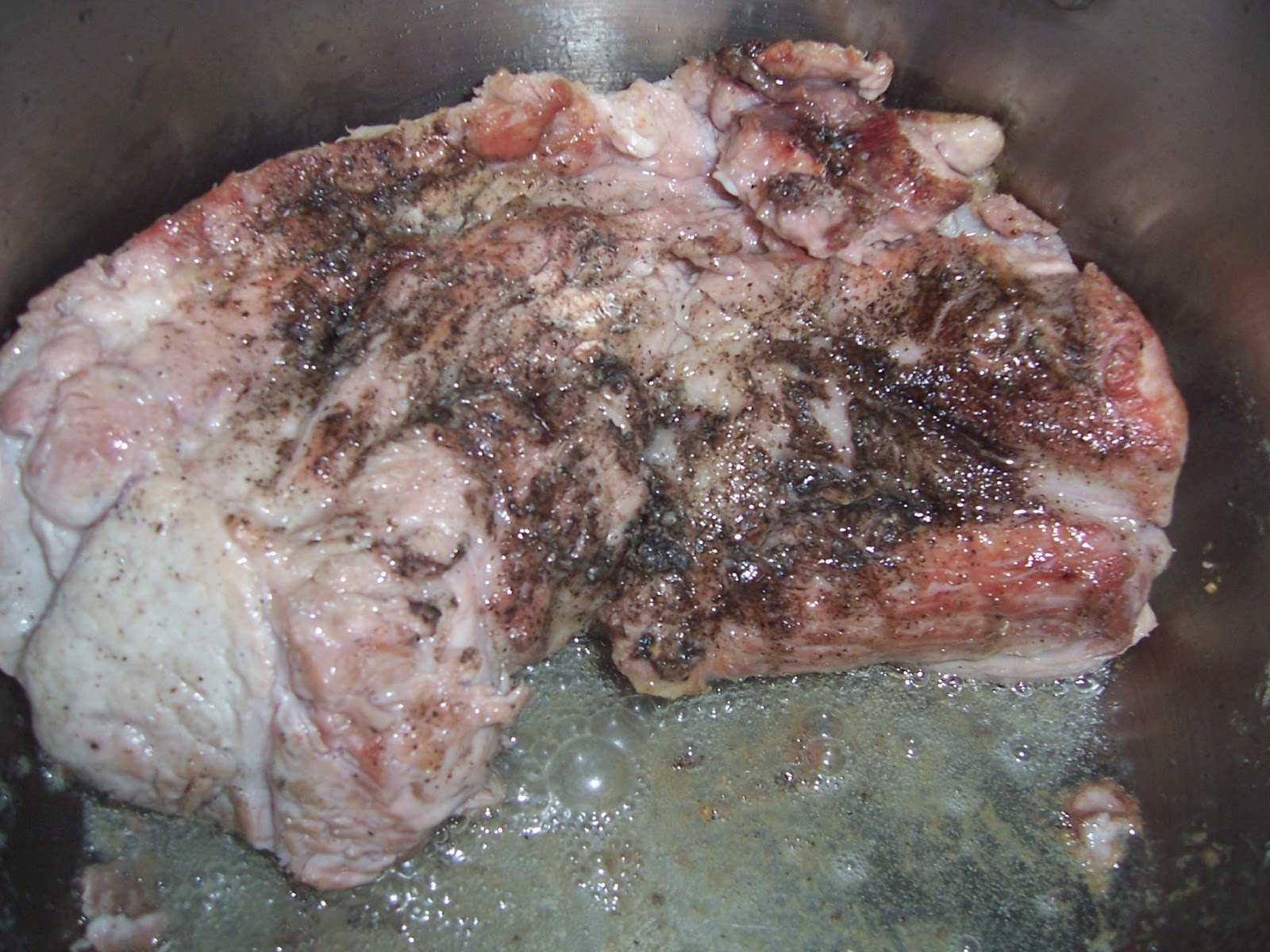 En una olla ponemos la manteca de cerdo y doramos bien la carne por todas partes, si en la carnicería nos la atan mucho mejor.