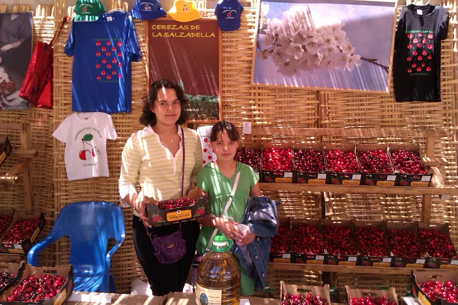 Este fin de semana estuvimos en un pueblo cerquita de Vinaròs, La Salzadella, donde celebraban la V Feria de la Cereza. Es un pueblo pequeño del Baix Maestrat al norte de Castellón, el pueblo nos encanto, y la feria también. Una feria con artesanía, talleres para niños, Show-cocina de los alumnos de Cuina i Gastronomía de Benicarló, un concurso de postres y por supuesto muchos stands donde probamos un montón de dulces, buñuelos, helado, granizado, mermelada, etc. que, madre mía, estaba todo buenísimo, de empezar y no parar y por supuesto todo elaborado con CEREZAS DE LA SALZADELLA.