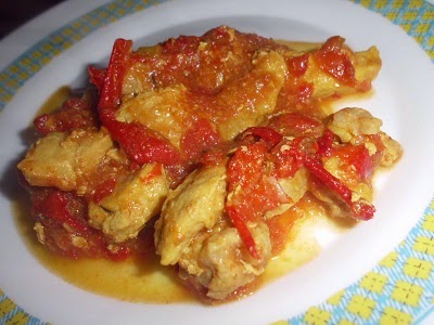 600 gr. de tomates maduros triturados y un poco de azúcar, lo que cabe entre los dedos nada más. Me gusta echarle poco azúcar porque prefiero que la salsa tenga un punto de acidez.
