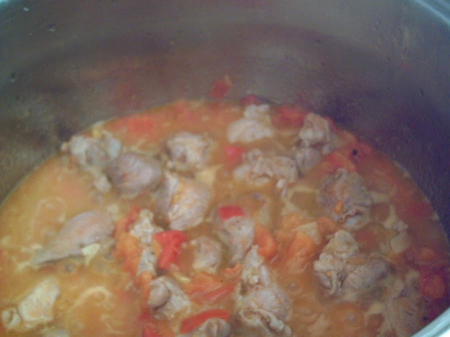 En una cazuela ponemos a calentar el aceite, picamos la cebolla y los ajos y los echamos cuando el aceite esté caliente. Cuando esté dorado salpimentamos la carne y la salteamos en la cazuela. Sacamos la carne y la apartamos. Picamos los tomates en dados muy pequeños y los añadimos a la cazuela, dejándolos cocer durante 30 minutos removiendo de vez en cuando. Añadimos la carne y tapamos la cazuela, dejándolo 5 minutos más. Probamos y corregimos de sal. Espero que os guste.