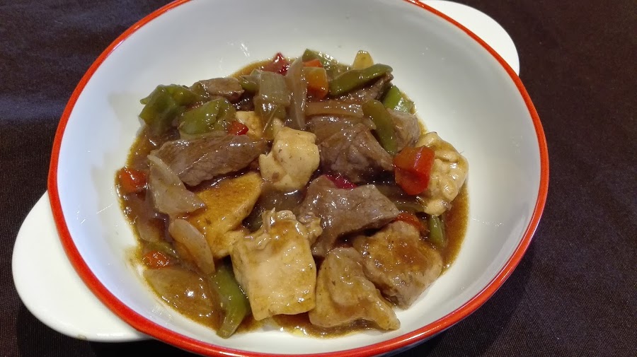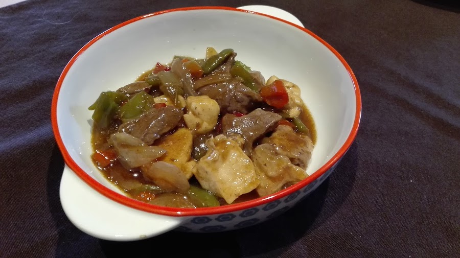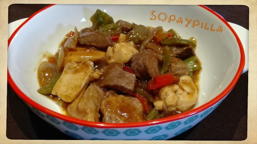 - Cuando la carne ya esté hecha, añadid la salsa de soja y removed bien, durante unos minutos, que se integren bien todos los sabores.