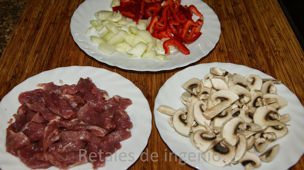 Esta es otra manera de comer carne, en este caso unos filetes de carne magra, sin necesidad de recurrir al simple filete a la plancha por el echo de hacerlo más ligero. Todos sabemos lo aburrido que a veces resulta comer carne a la plancha sin más, en las dietas de adelgazamiento y por ello he querido enseñaros esta idea, que no es ni mas ni menos que cortar en tiras finas el filete que normalmente nos comeríamos a la plancha y complementarlo con verduras salteadas y un aliño ligero sin grasa.