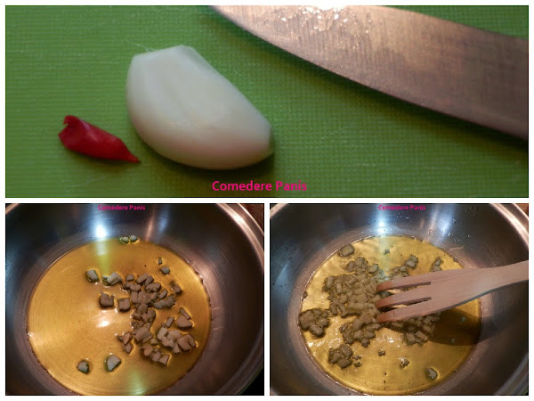 Picar los ajos y dorarlos en una sartén con abundante aceite de oliva.
