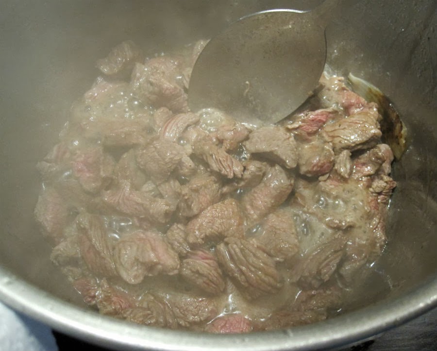 5. A continuación, rehoga a fuego alto la carne para sellarla. Remueve bien para que no se queme.