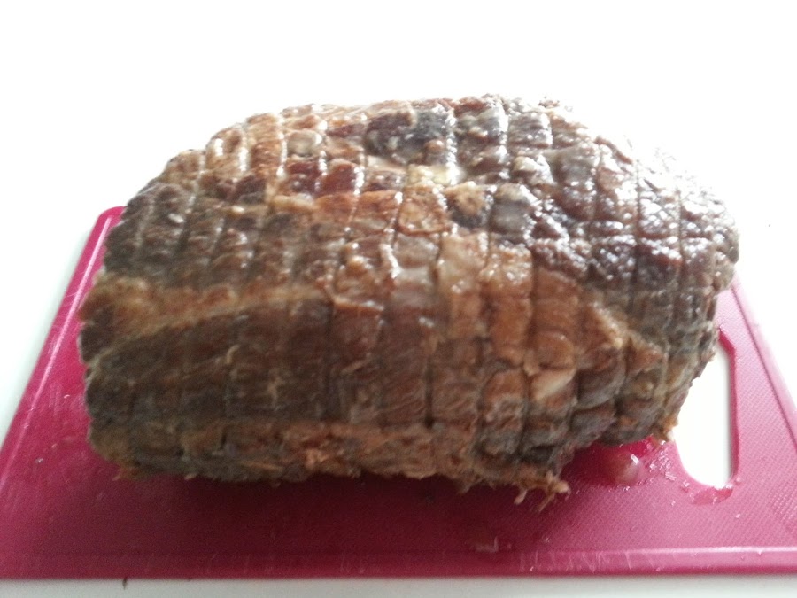 Cuando la compréis, pedidle al carnicero que os la ponga en una red, para que no se os abra durante la cocción, debe quedar bien firme. Yo l a hago de un día para otro, para que esté bien compacta y se pueda cortar con facilidad.