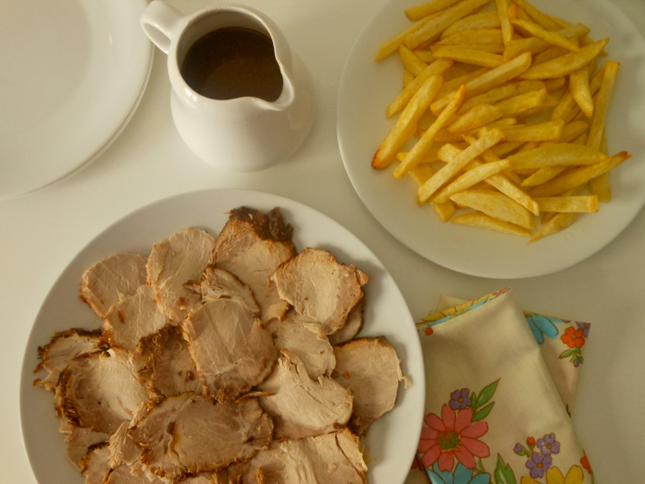 Esta carne está riquísima caliente acompañada de su salsa o fría para tomar en bocadillos acompañada de hojas de lechuga y mayonesa.