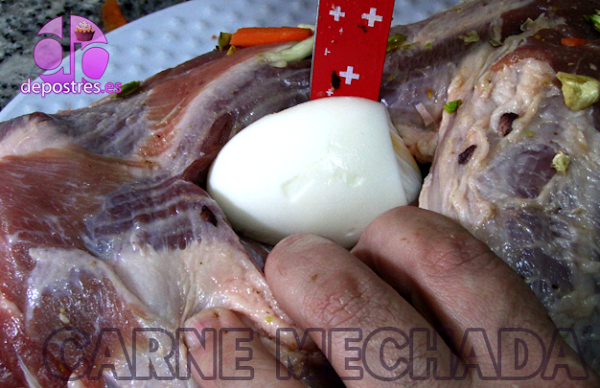 Para los huevos cocidos hacemos hendiduras con un cuchillo y los introducimos en la carne