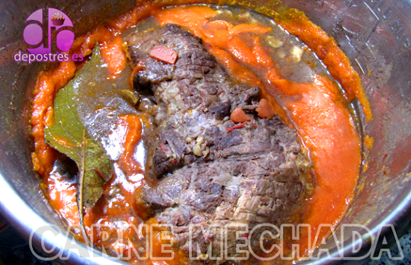 En cuanto a la cantidad de los ingredientes no tenéis que hacerlos exactos, como en repostería, pues ya veréis que esta carne mechada se va haciendo sobre la marcha y todos los ingredientes se pueden poner en más o menos cantidad. Os dejo las cantidades que yo he utilizado.