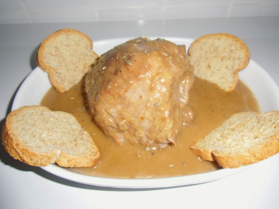Emplatamos en una fuente con la salsa por encima para servir caliente.