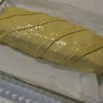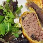Envolvemos la carne muy bien con el hojaldre y aprovechamos los recortes para adornar por fuera.