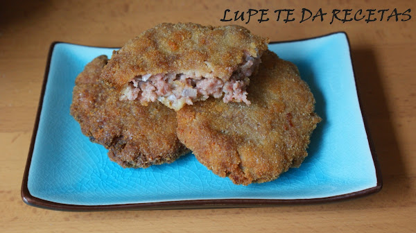 Picar la cebolla muy finita añadirla a la carne picada y mezclar con 1 huevo batido y las especias que nos gusten, los ajitos muy picados y 2 cucharadas de queso rallado, sal, pimienta y perejil. Hacer una pasta con todo lo anterior y añadir poco a poco pan rallado. Hacer unas bolas con toda la mezcla y aplastarlas. Rebozar en huevo y pan rallado.