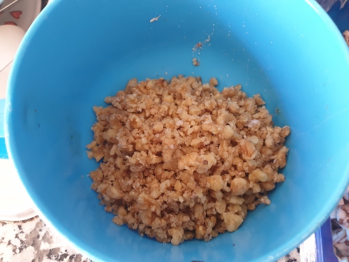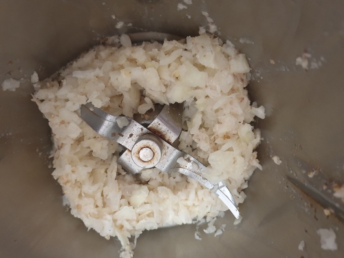 1. Tritura los 3 ingredientes principales por separado (champis, nueces y cebolla) unos segundos en tu robot de cocina. Hazlo dándole sólo unos segundos porque queremos que se queden trocitos.