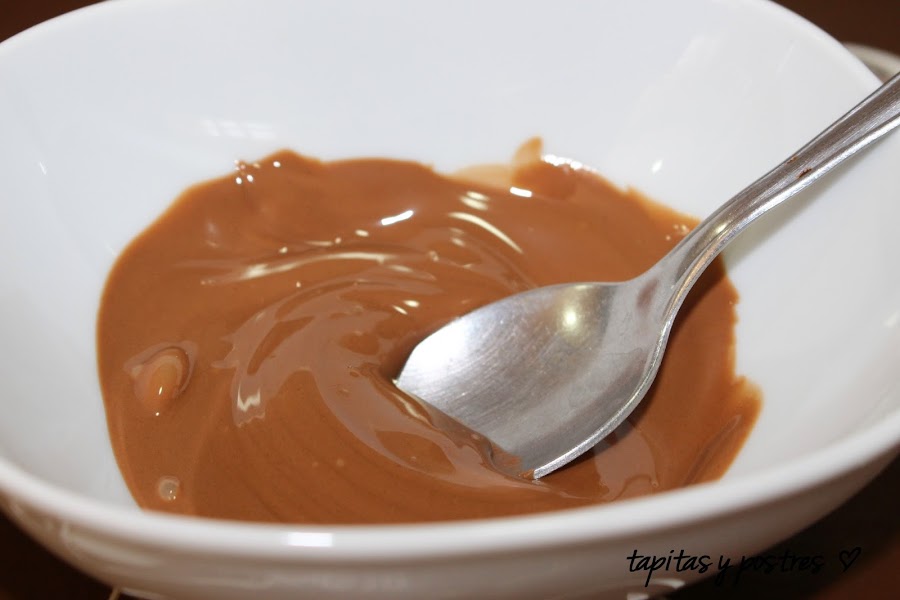 Fundimos el chocolate y echamos un hilo sobre el merengue.