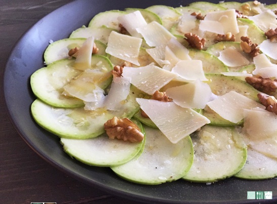 Lavar y cortar (sin pelar) los calabacines en rodajas muy finas con una mandolina o un cuchillo afilado.