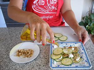 Ves haciendo capas de esta misma forma, hasta acabar todas las rodajas de calabacin.