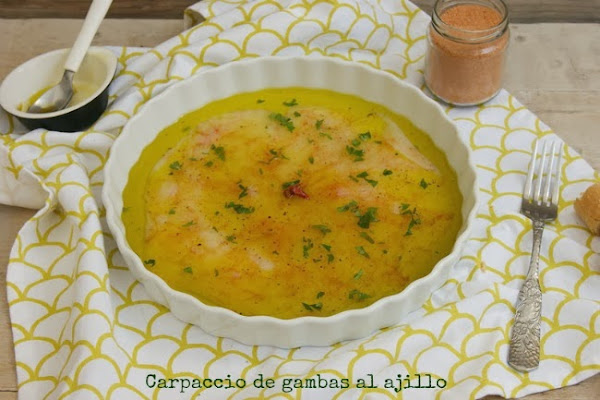 Como ya os comentaba el lunes, este fin de semana pasado en #GastroAove2014 una de las primeras actividades fue la del concurso de recetas de los bloggers participantes. Desde el principio se me metió en la cabeza llevar un carpaccio de gambas al concurso, aunque con la duda de si éste iba a resistir bien el transporte (por eso también preparé el paté de queso y AOVE, por si no llegaba bien el carpaccio). Lo mejor era que podía tener preparado el carpaccio dentro del congelador y transportarlo justo después de sacarlo de el congelador dentro de una bolsa térmica con una caja de hielo manteniendo el frío. Llegó en perfecto estado y al final fue el segundo plato más votado de la tarde, detrás de los bombones de AOVE de Mavi, de Cocidito de mi vida y por delante del paté de perdiz, de Carmina en la Cocina. Este carpaccio a mi personalmente me gustó muchísimo. Adoro las gambas y en crudo es como mejor se pueden tomar, y si además le ponemos un buen AOVE tendremos un plato de diez. Y es que también está aderezado con una sal de gambas de la que también os pongo la receta y que descubrí hace unos meses gracias a Marcos Pedraza, de la Ruta del Veleta, aunque yo la he preparado de forma distinta a ellos.
