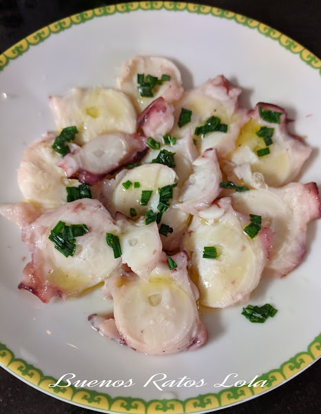 No es un auténtico carpaccio pues se prepara con pulpo cocido. Tampoco es necesario macerar las láminas para que se "cocinen"; mas bien es un aliño. Pero el resultado es muy bueno.