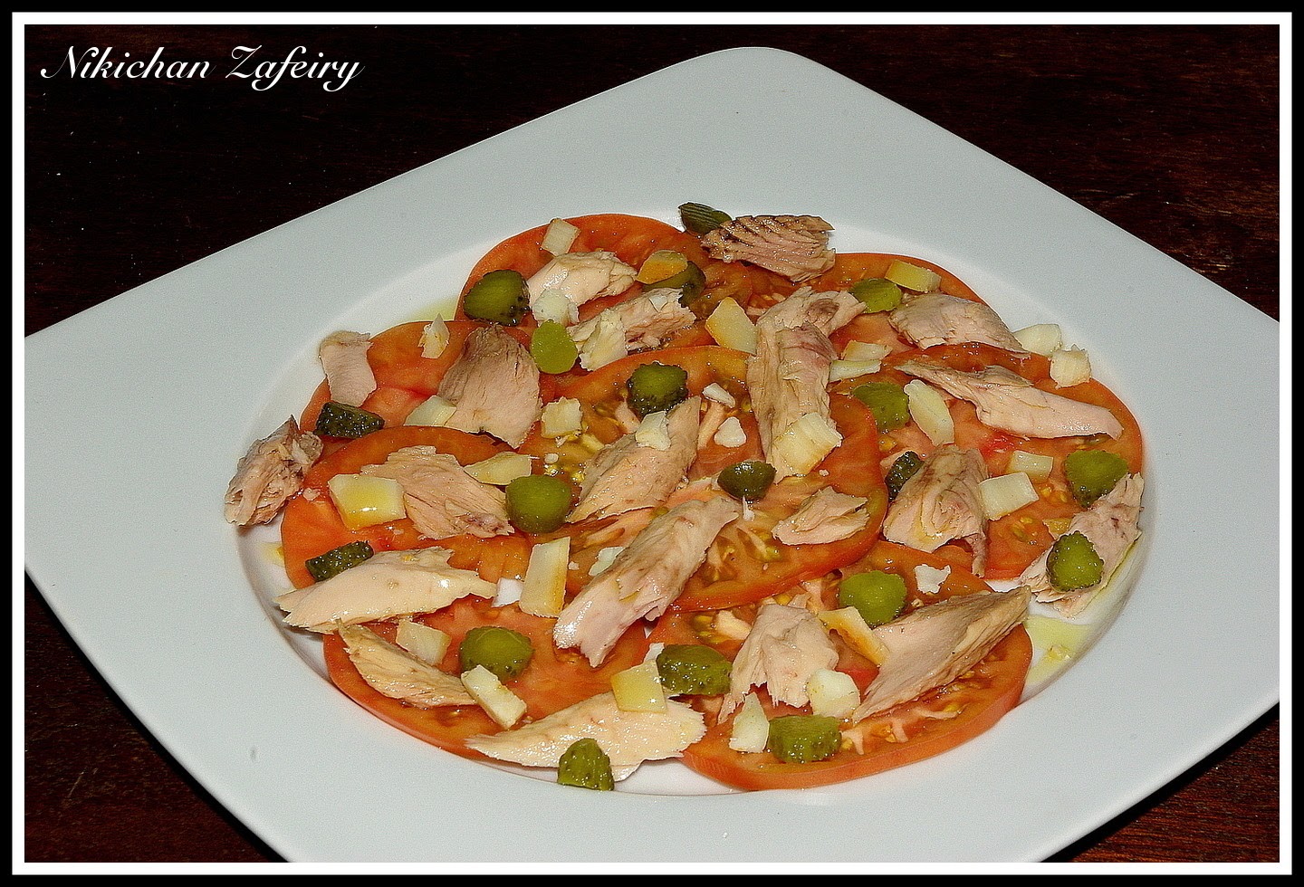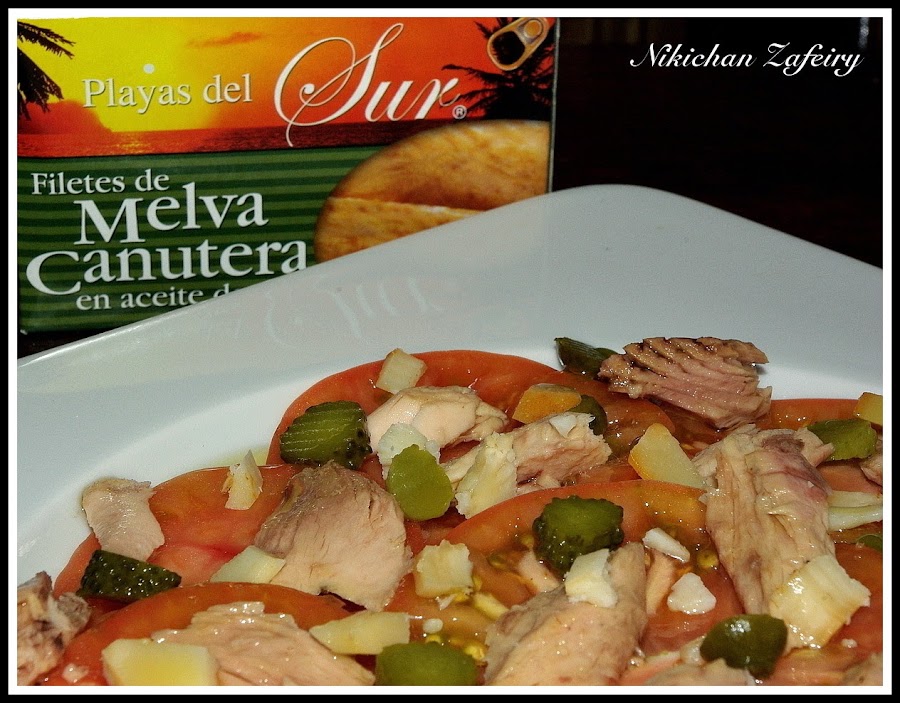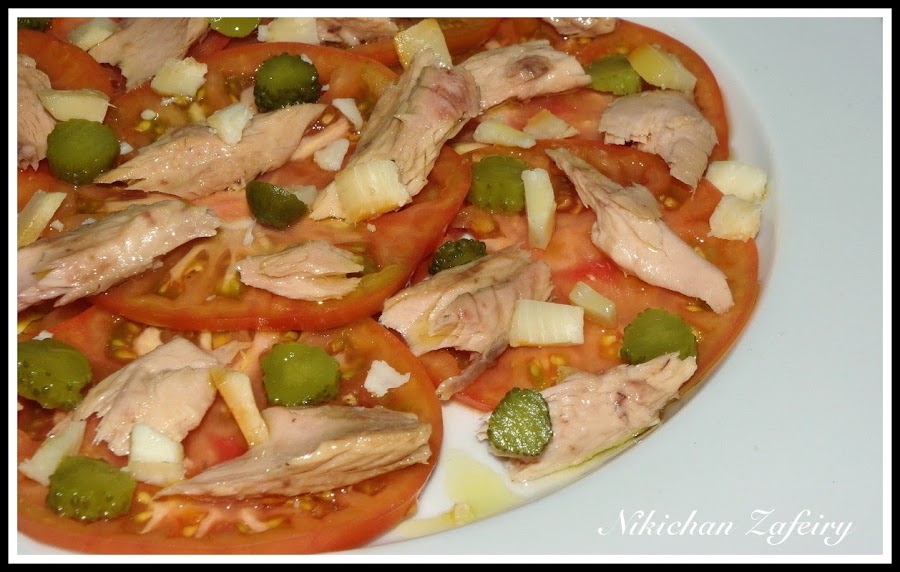 Hoy vamos a preparar una rica ensalada de tomates Raf, para disfrutar de un plato sano y rico... Yo lo preparé como un primer plato para compartir y después comimos un segundo de pasta. Tiene mucho sabor y buenos contrastes, pero si algún ingrediente no os gusta siempre se puede cambiar por uno similar.