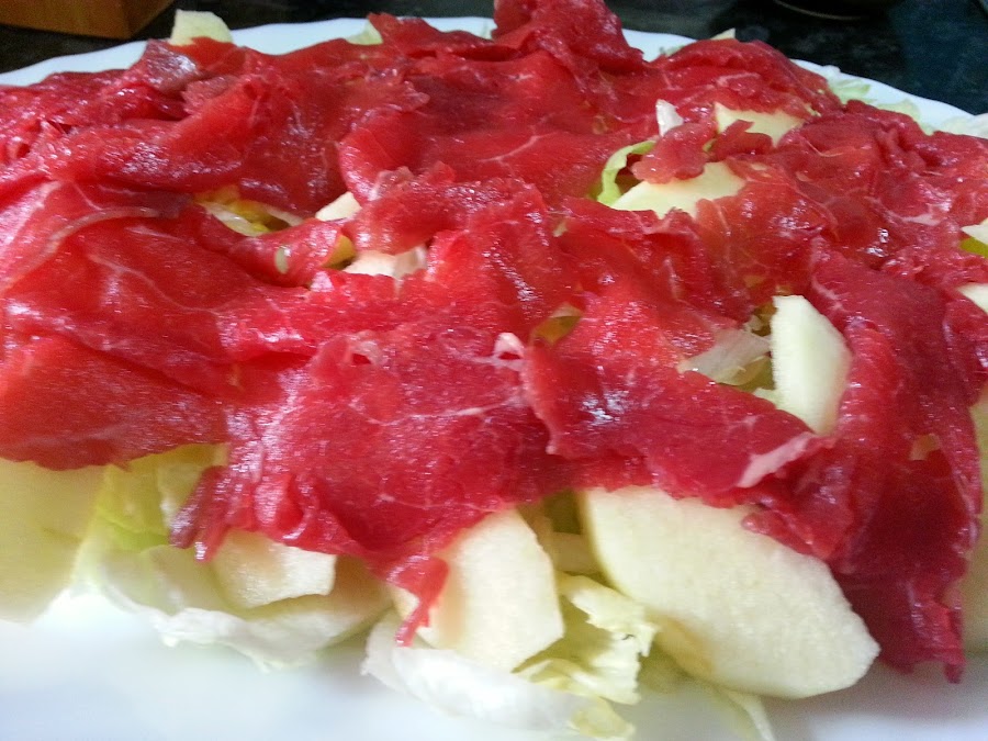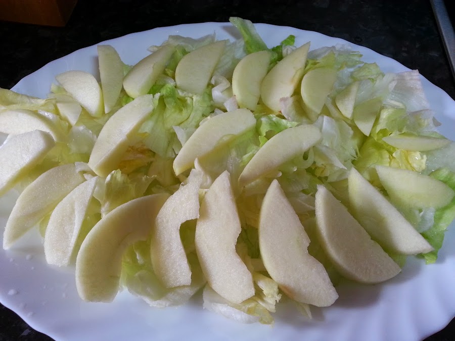 Cortamos la manzana en láminas y añadimos a la lechuga.