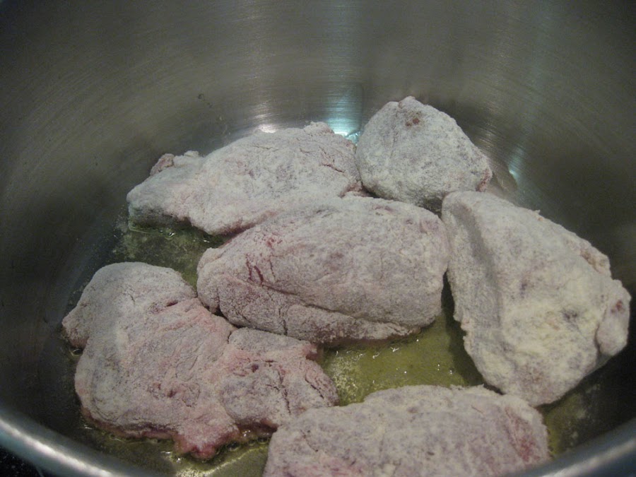 Comenzamos preparando la carne. Debemos quitarle la telilla que trae. Salpimentamos, pasamos por harina y le damos vuelta y vuelta en una cazuela con un buen chorro de aceite de oliva, como unas 5 cucharadas. Sacamos de la cazuela y reservamos.