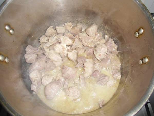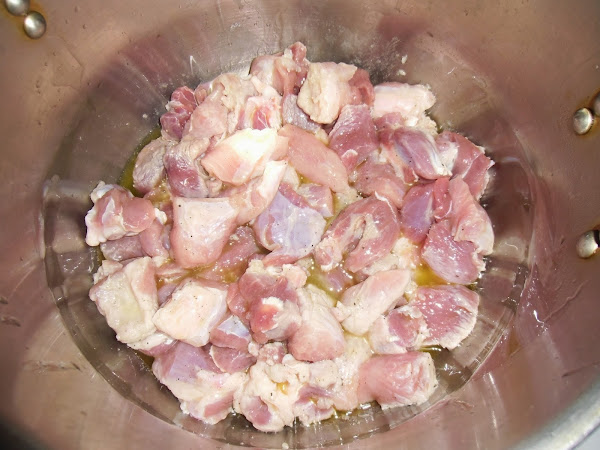 Sal Limpiamos de nervios la carne, la lavamos, salpimentamos y marcamos en una olla con un poco de aceite de oliva.