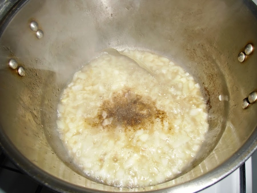 Añadimos una cucharada de comino, dos clavos y una hoja de laurel, salpimentamos y mezclamos.