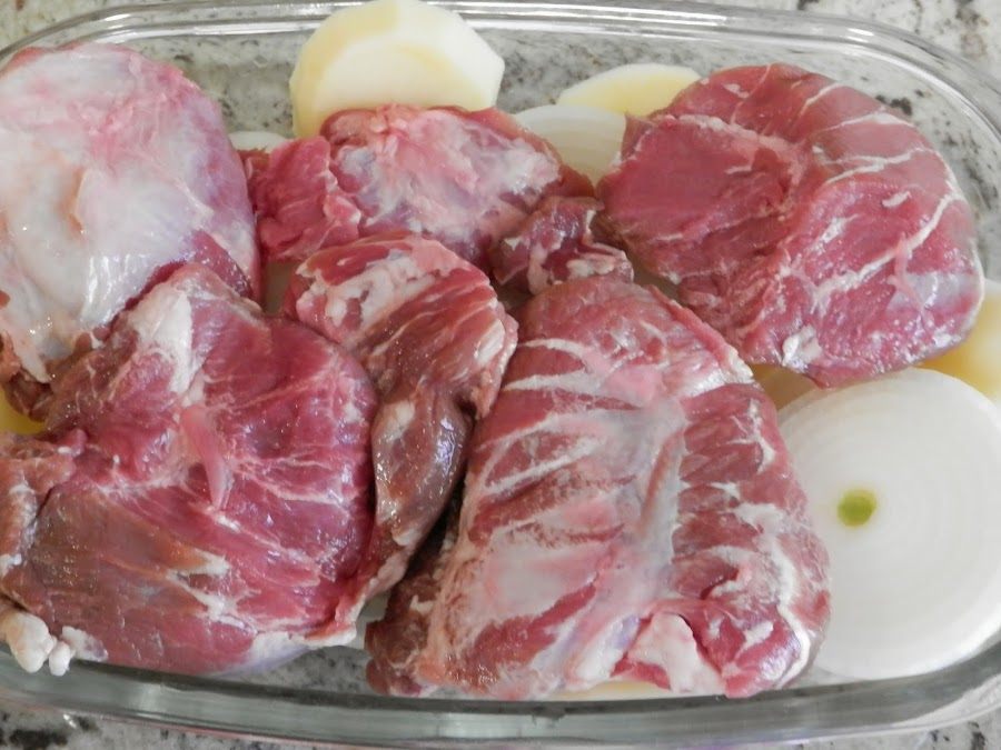 Vamos a montar el asado: en la parte de abajo ponemos las rodajas de la patata.