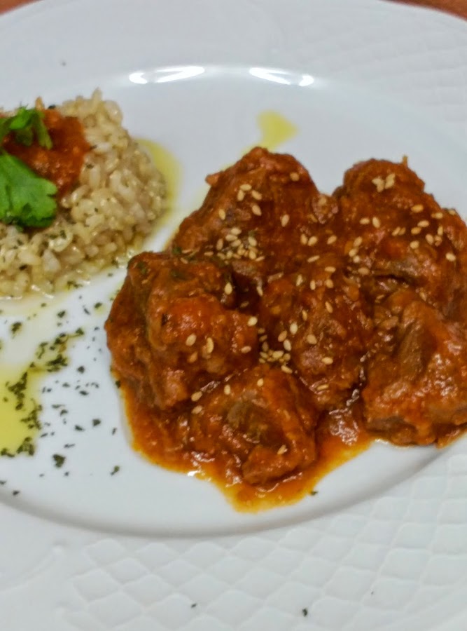 CARRILLADAS CON TOMATE Y GUARNICION DE ARROZ INTEGRAL