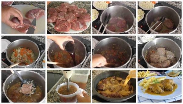 Si hacéis las carrilleras en salsa en una olla rápida o a presión tan solo tendremos que cubrir las carrilleras con agua, cerramos la olla y una vez que empiece a hervir las dejaremos 20 minutos.