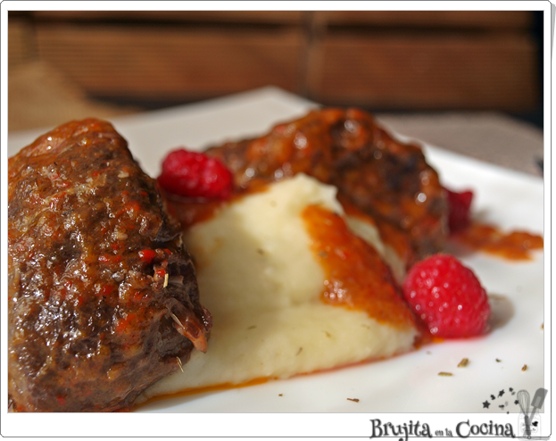 Pero bueno cuando hay fiesta pues también se refleja en la comida asi que para comer unas carrilleras, me encanta esta carne porque si está bien hecha se deshace en la boca, y para que tenga ese toque fiestero las he preparado con frambuesas y con cava, vamos que si este no es un plato de fiesta!!! Además lo puedes dejar hecho de víspera para que la que se impregen bien de la salsa y salir con la familia a tomar un vertmut o un mosto.