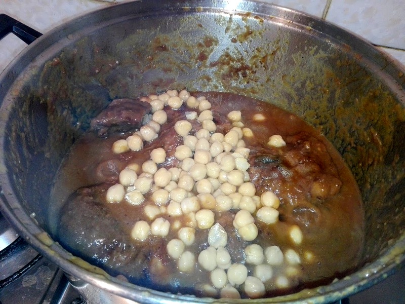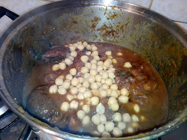 10 minutos antes de terminar la cocción, añadir los garbanzos cocidos para que cojan todo el sabor.